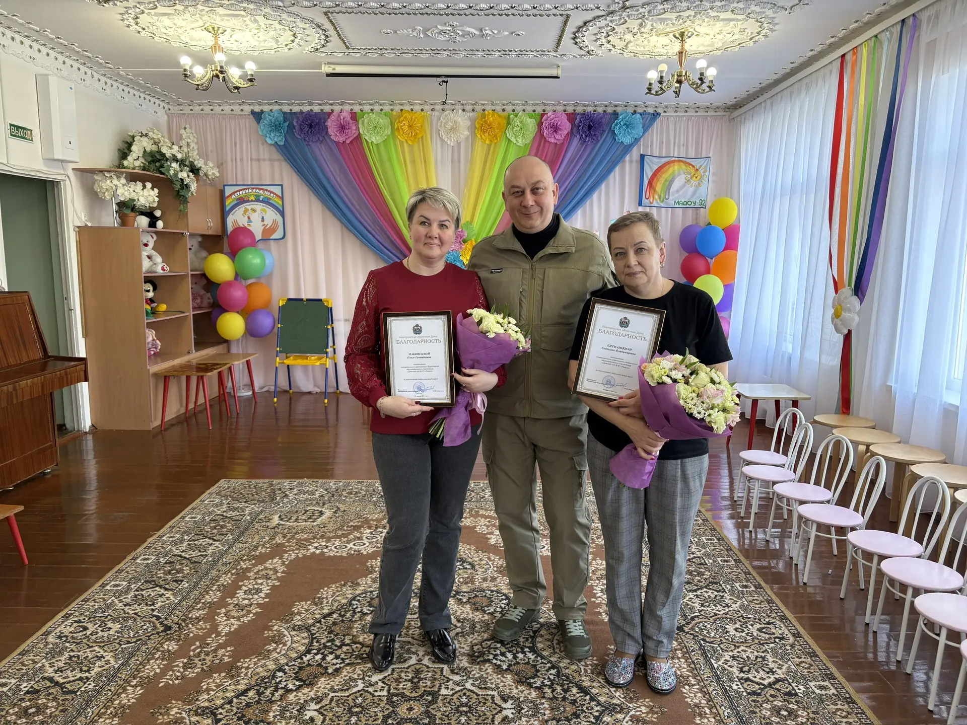 За многолетний добросовестный труд депутат передал воспитателям детского сада Благодарности председателя Новгородской областной Думы.