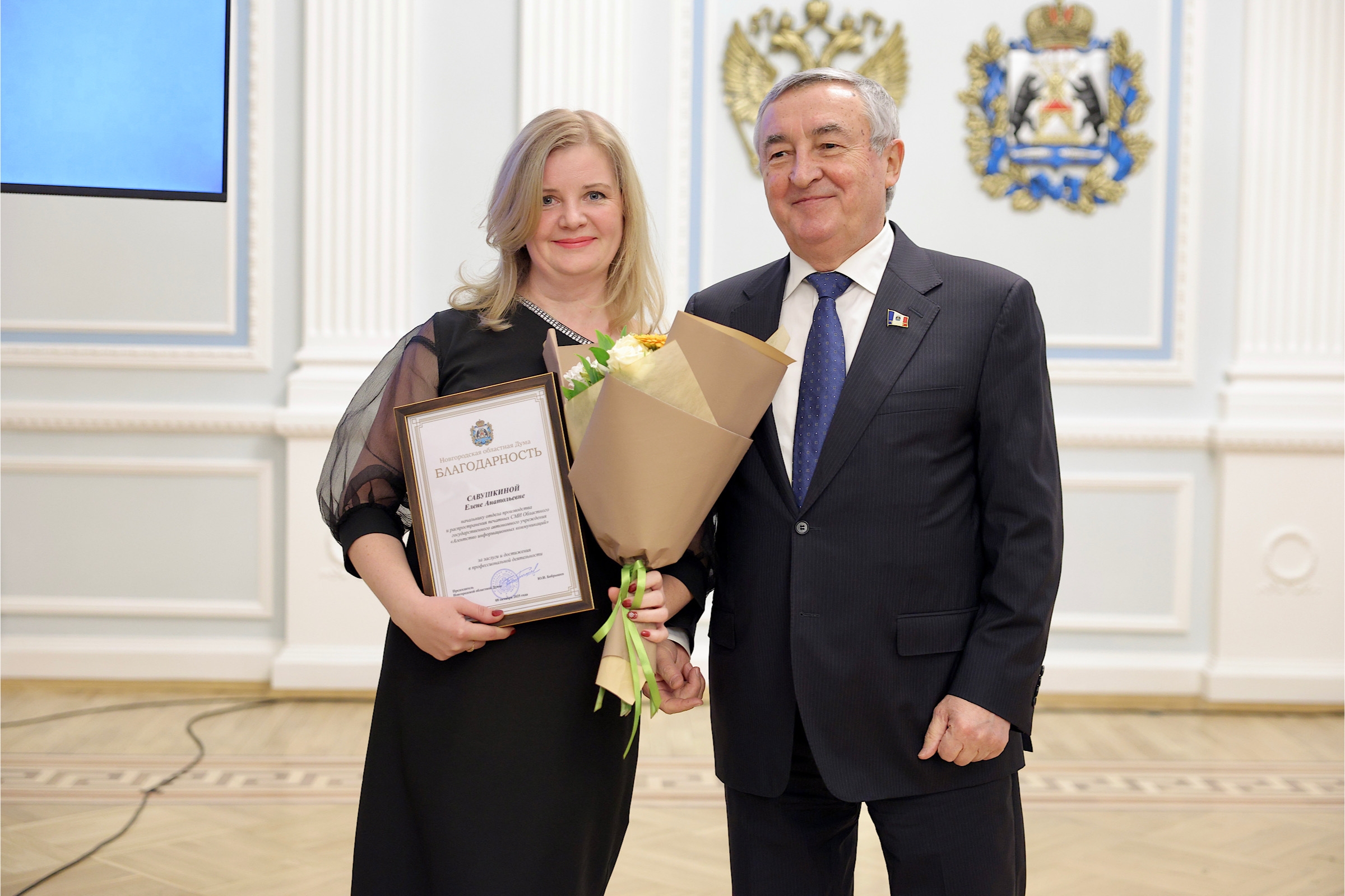 Председатель Новгородской областной Думы Юрий Бобрышев поздравил коллектив редакции с праздником. Особые слова признательности он адресовал ветеранам новгородской журналистики.