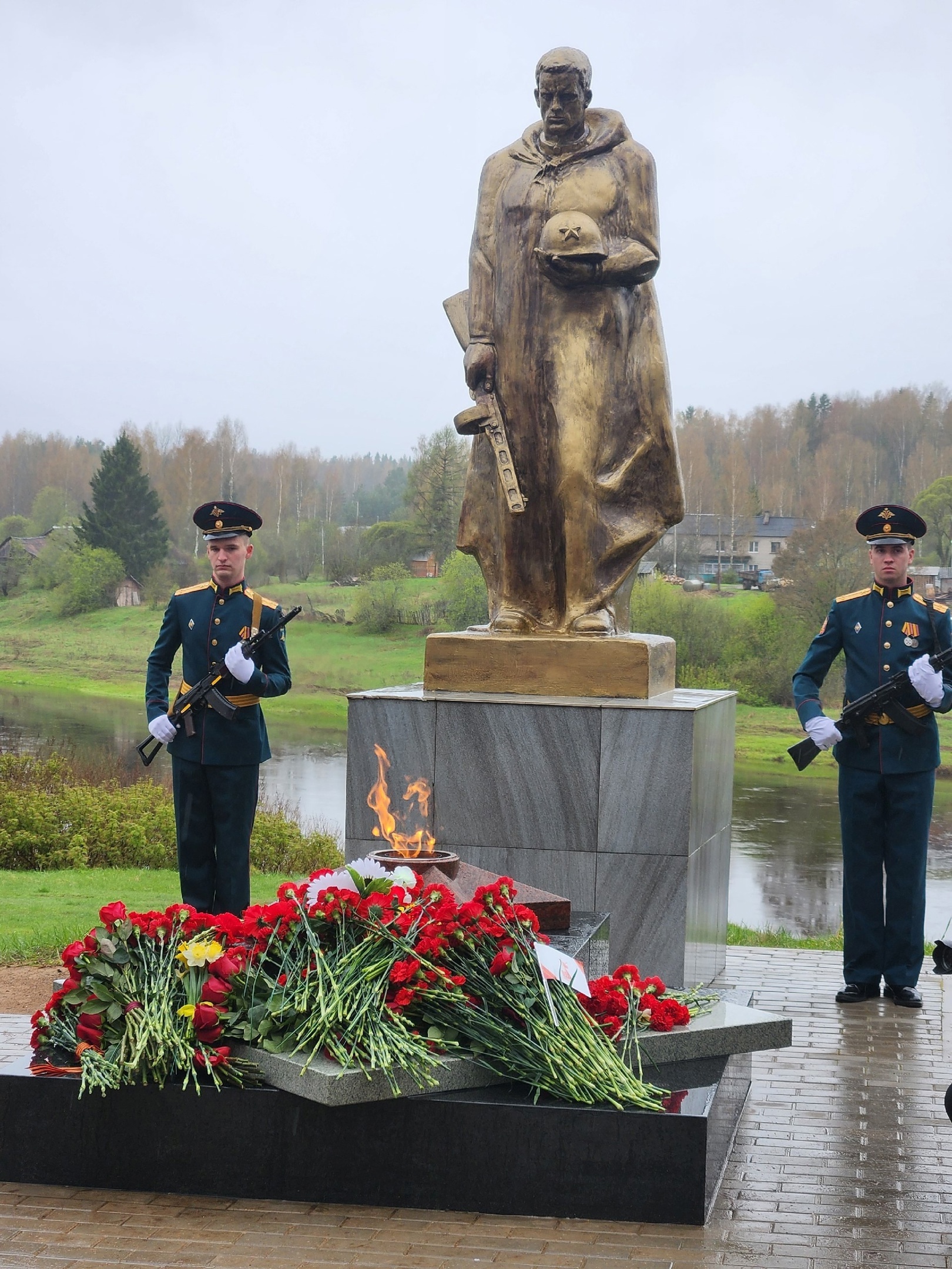 Право зажечь Вечный огонь предоставили Почётному гражданину Любытинского района Владимиру Кобякову, участнику СВО с супругой и ученику Любытинской средней школы, правнуку ветерана Великой Отечественной войны.