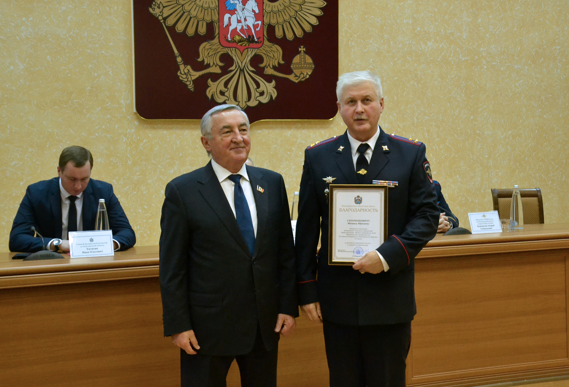 Новгородских полицейских также поздравили начальник управления МВД России по Новгородской области Андрей Коновалов, первый заместитель губернатора региона Евгений Богданов, главный федеральный инспектор по Новгородской области Иван Евтихин.